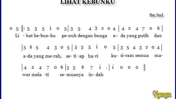 Loncat ke navigasi loncat ke pencarian. Lihat kebunku lagu anak anak abadi ciptaan pak kasur dibawakan oleh lidya lau atnataliamiu nadia raissa febby dengan iringan musik kak nunuk. Not angka lagu kebunku ciptaan ibu sud lihat kebunku penuh dengan bunga adalah lagu anak anak yang diciptakan oleh ibu sud berjudul kebunku.