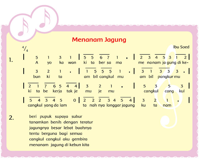 Jagung bisa ditanam di kebun ladang maupun sawah teman teman. Lagu mendaki gunung diciptakan oleh at mahmud. Pengertian birama birama adalah suatu tanda untuk menunjukkan jumlah ketukan dalam satu ruas birama.