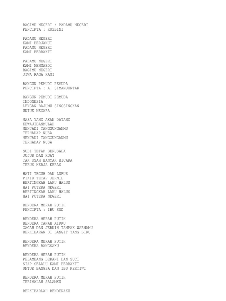 • Daftar Lagu Wajib Nasional Indonesia Lengkap Dengan Pencipta Dan Liriknya Bagian 3